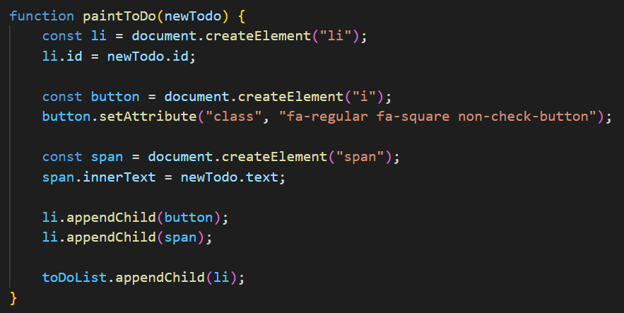 -> 그렇다고 이 코드를 paintToDo 함수 안에 위치시키면,